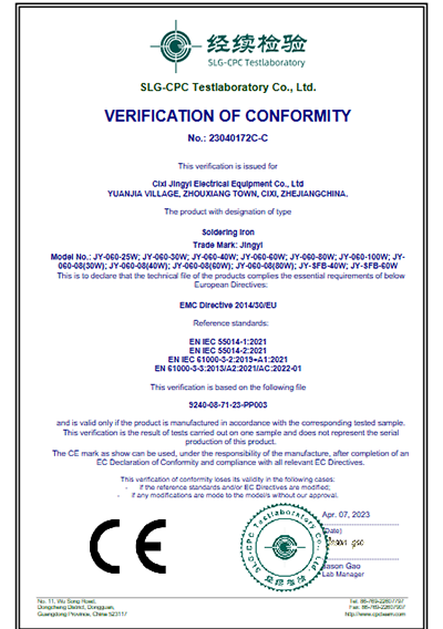 CIXI JINGYI ELECTRICAL EQUIOMENT CO.,LTD. is a professional manufacturer specializing in the R&D and production of electric soldering irons, with over thirty years of in-depth experience in the industry. We have accumulated mature production technology and rich market insights through years of dedication.